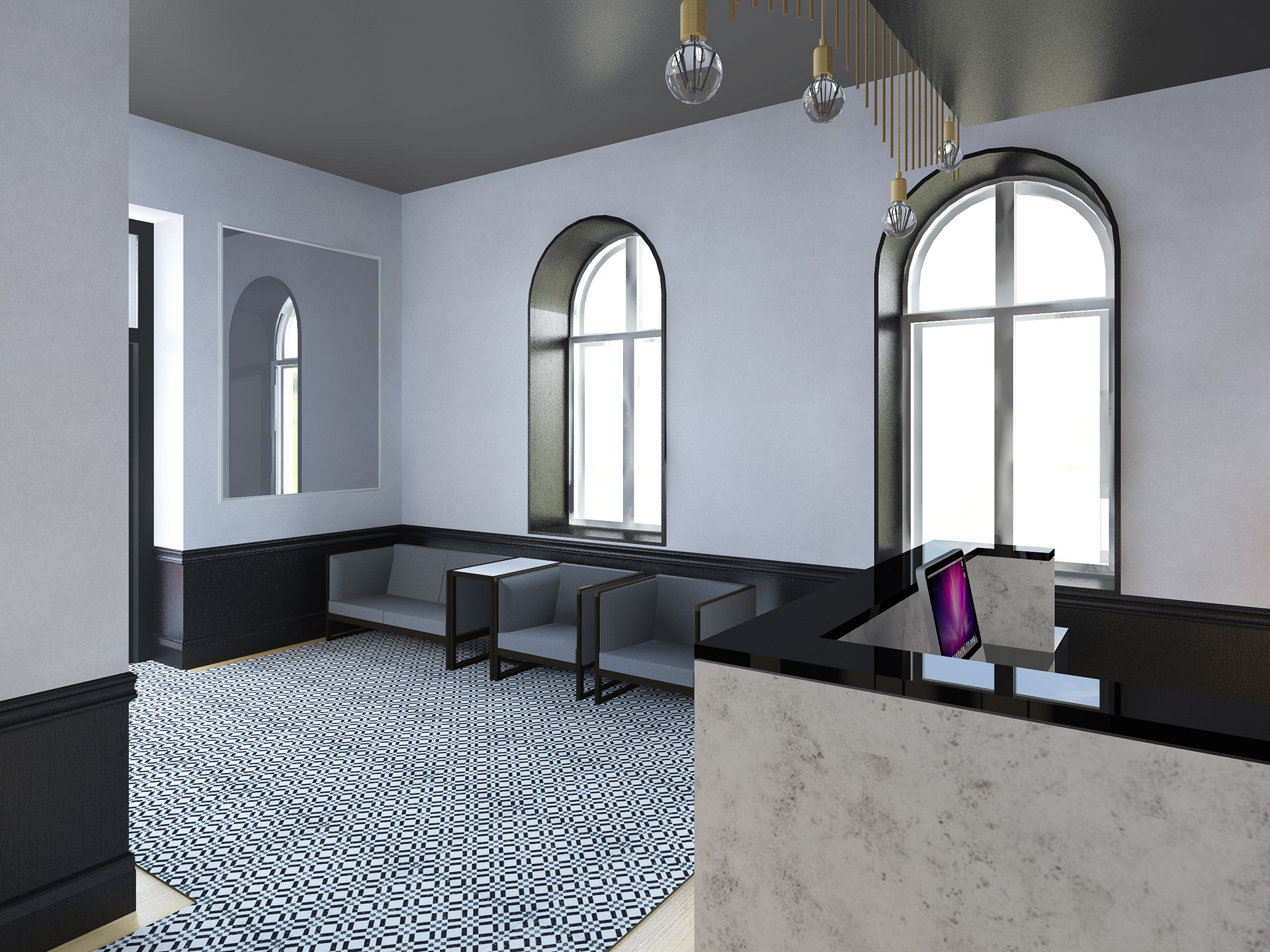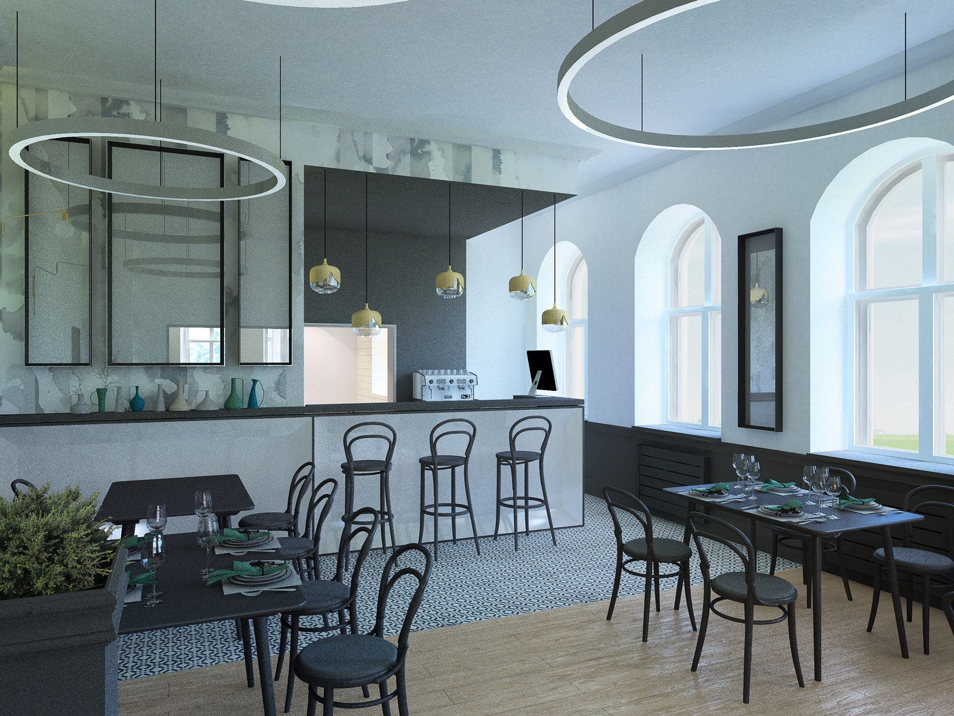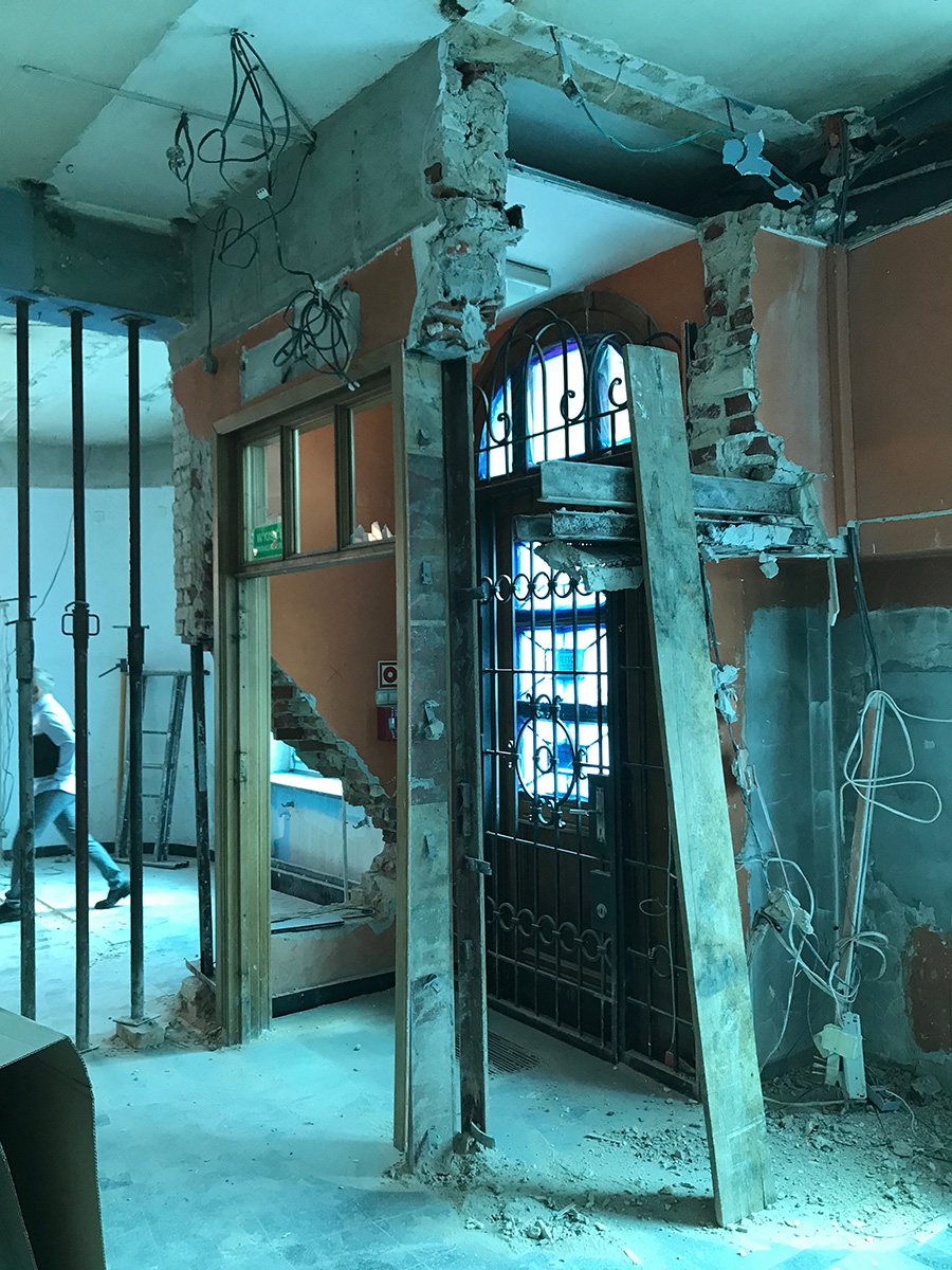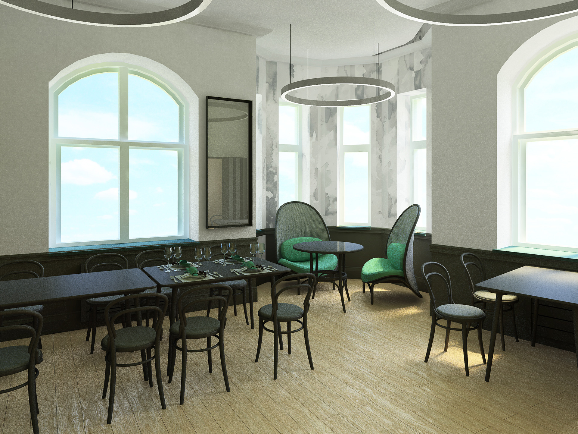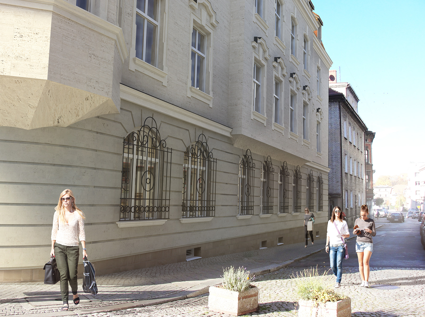 Charakterystyczna narożna kamienica w stylu secesyjnym na Rynku w Tarnowskich Górach. Kompleksowy projekt rewitalizacji, przebudowa wnętrz na restaurację i pomieszczenia biurowe.